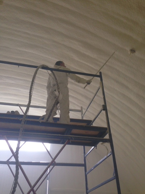 По желанию Заказчика мы производим работы по монтажу напыляемой полиуретановой (ППУ) теплоизоляции с применением